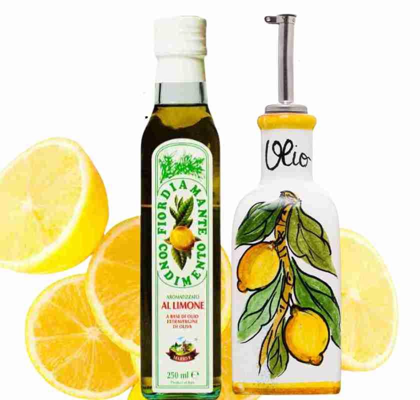 Citronoljeset med handmålad olivoljeflaska i keramik och en exklusiv citronolja Aromatizzato al Limone.