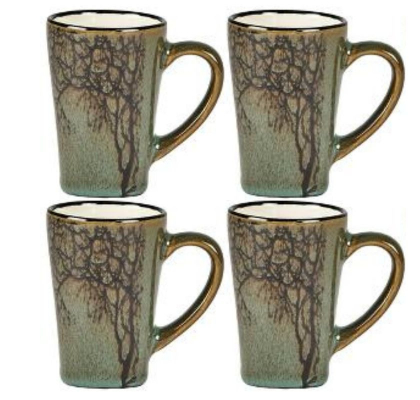 Muggarna är smala och "höga" och utsida med grönglasyr i fint mönster och vit insida. Perfekta för att avnjuta en äkta italiensk espresso.