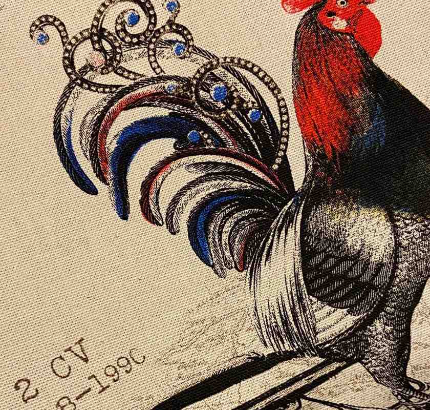 Mönster med franska symboler som Eifeltornet, en fransman med basker, en tupp, citroen mm och diverse texedr är ett perfekt motiv för alla frankrike-älskare.