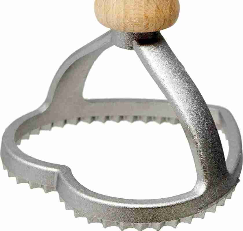 Att med hjälp av hjärtformade raviolijärn stansa ut pastakuddar i olika storlekar är en kul sysselsättning för både proffs- och glada amatörkockar. Traditionell raviolistämpel eller ravioli-stamp av aluminium med snygg knopp av bok gör de finaste raviolikuddar snabbt och enkelt.
