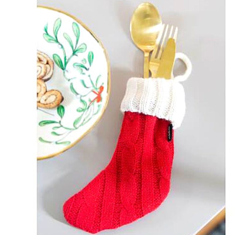 Duka ett mysigt julbord och lägg besticken i den söta och mjuka strumpa vid varje tallrik eller kuvert.