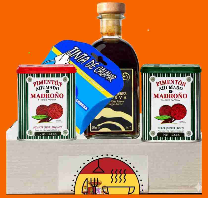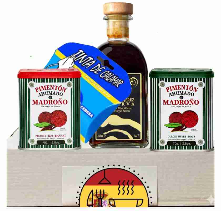 Spansk smakupplevelse: En handplockad juvelbox med fyra ikoniska spanska smaksättare och delikatesser.