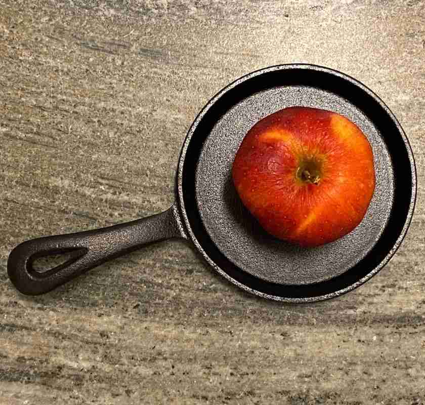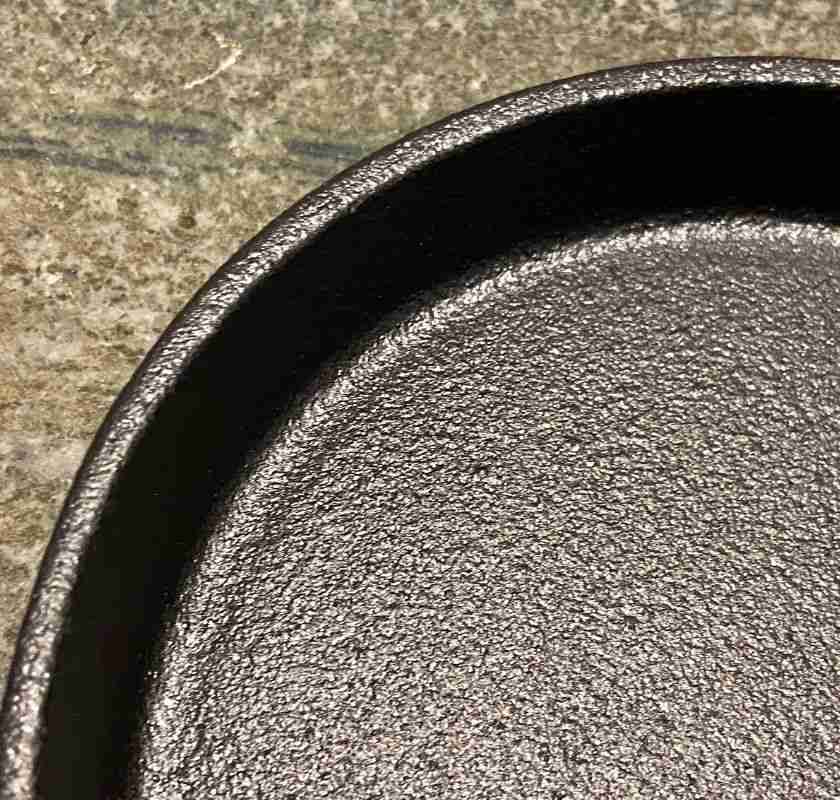 Portionspannan är tillverkad av rått gjutjärn och har därför en rå yta.
