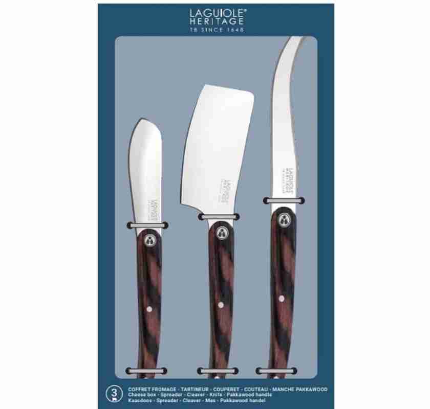 Ostset Laguiole 3st ostknivar med handtag i mörkt pakka-trä