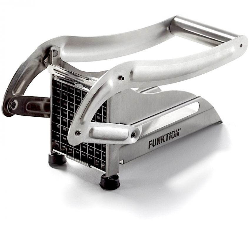 Skär hemmagjorda pommes snabbt och enkelt - lika fina som på restaurang med ett pommes-frites-järn. Manuell pommes fritesskärare som löser pommes-problemet bilxtsnabbt och helt utan kniv.