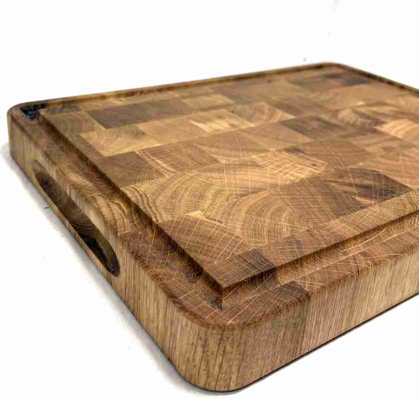 Skärbräda i ek av ändträ med skåra