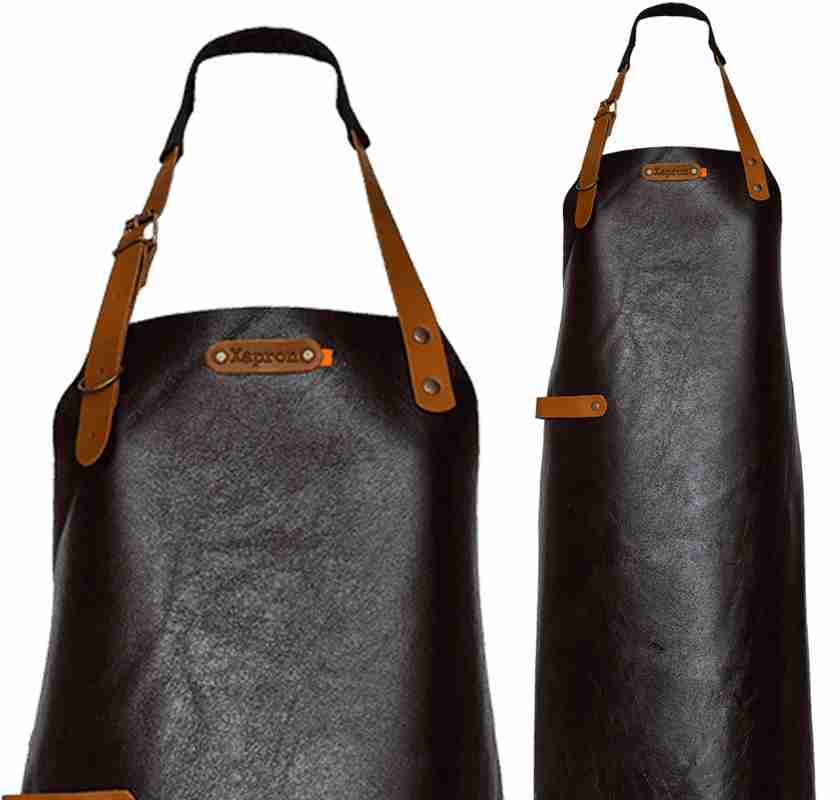 Ett helt fantastiskt skinnförkläde i rubust avtorkningsbart vaxat skinn. Läderförkläde som passar lika bra i hemmaköket som vid grillen eller på serveringspersonalen på restaurangen.