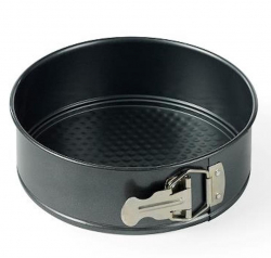 Rund springform i stål lämplig för bakning av paj, sockerkaka, morotskaka, chokladkaka, tårtbottnar eller bröd. Smörj formens insida och botten med smör, bakspray eller neutral olja.