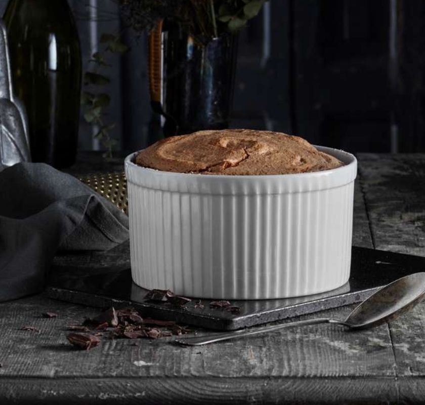 Klassisk ramekin med räfflade höga ytterkanter för sufflér eller andra goda rätter.
