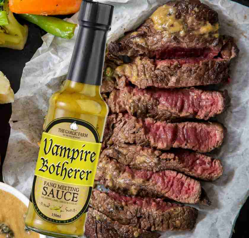 I en vampyravskräckande marinad: Ge kött en liten skvätt olivolja och en generös mängd Vampire Botherer och låt det marinera. Resultatet? En saftig, smakrik måltid som kommer att få gästerna att jubla.